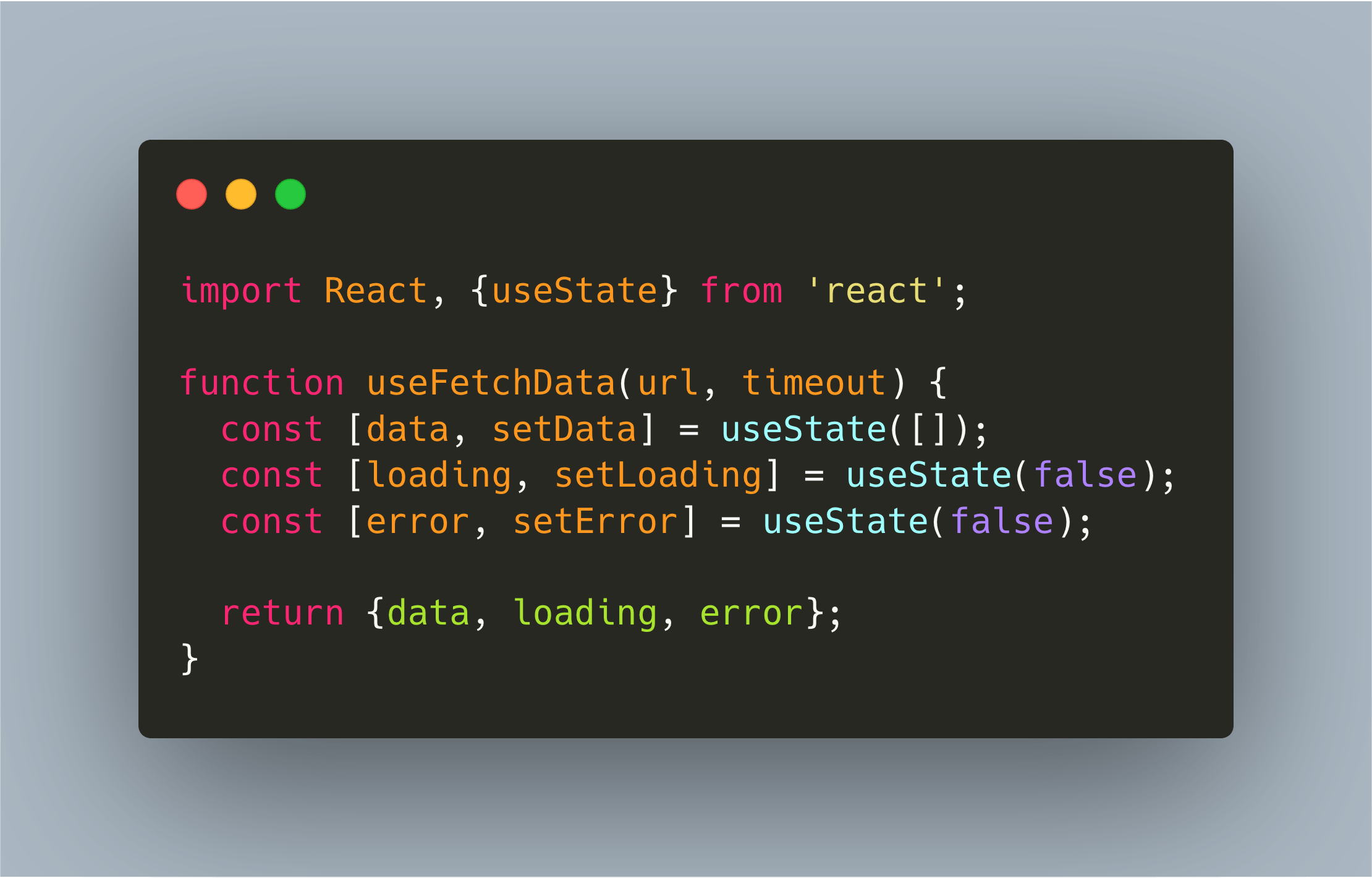 data,loadinganderrorare defined with theuseStatehook - In line 8, all state variables are returned