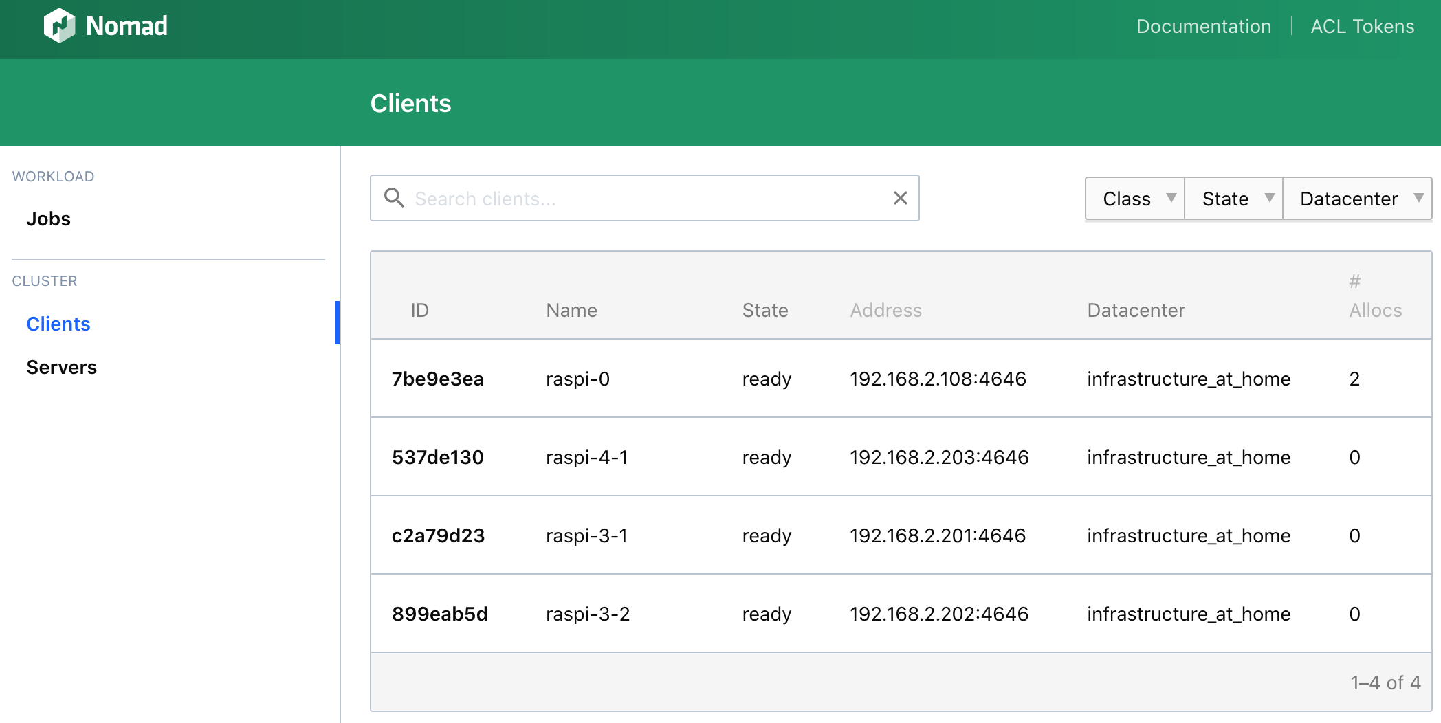 As before, I automated the installation completely with Ansible. The installation went smoothly. But I needed two evenings of getting Nomad to run because of a subtilty. Basically, I assumed that configuration for Nomad would be the same as for Consul: Point it to a directory and it will use all included configuration files. Well yes, no! You need to explicitly pass the configuration files: