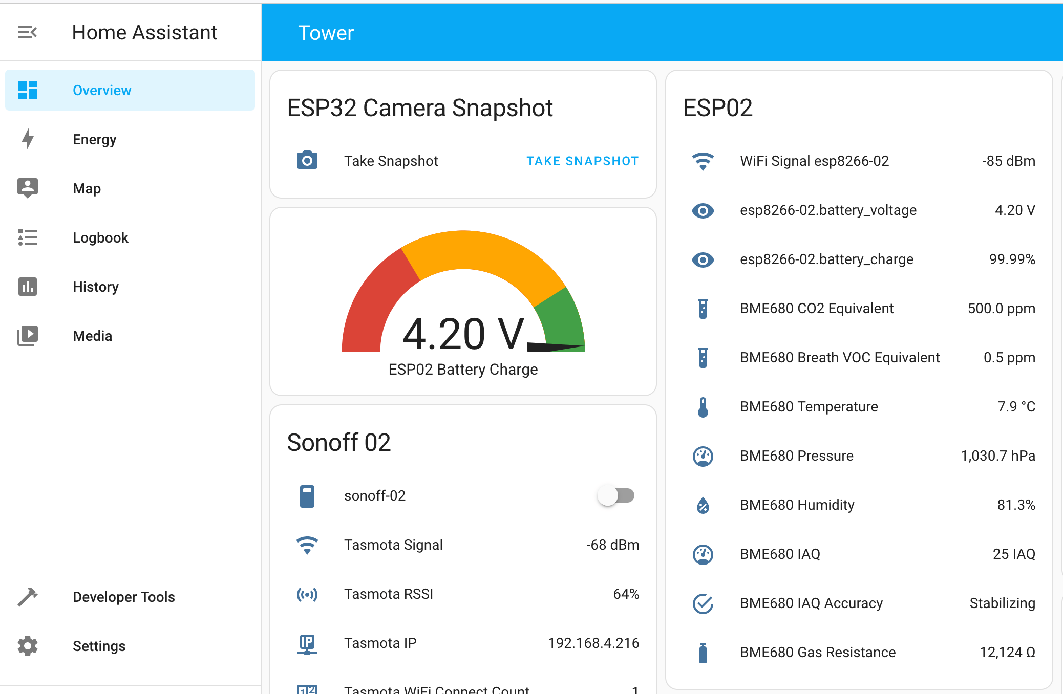 A separate section on its own. Given the correct sensor and devices, you can measure the overall power consumption of your home, access the production of energy from solar panels, read the status of batteries, and track the power consumption of individual devices as well.