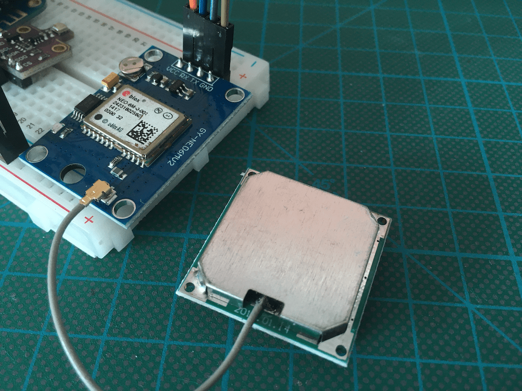 The connection with the GPS board requires just two wires because the coordinates are communicated as simple UART messages. To read this serial data, any two digital pins can be used.