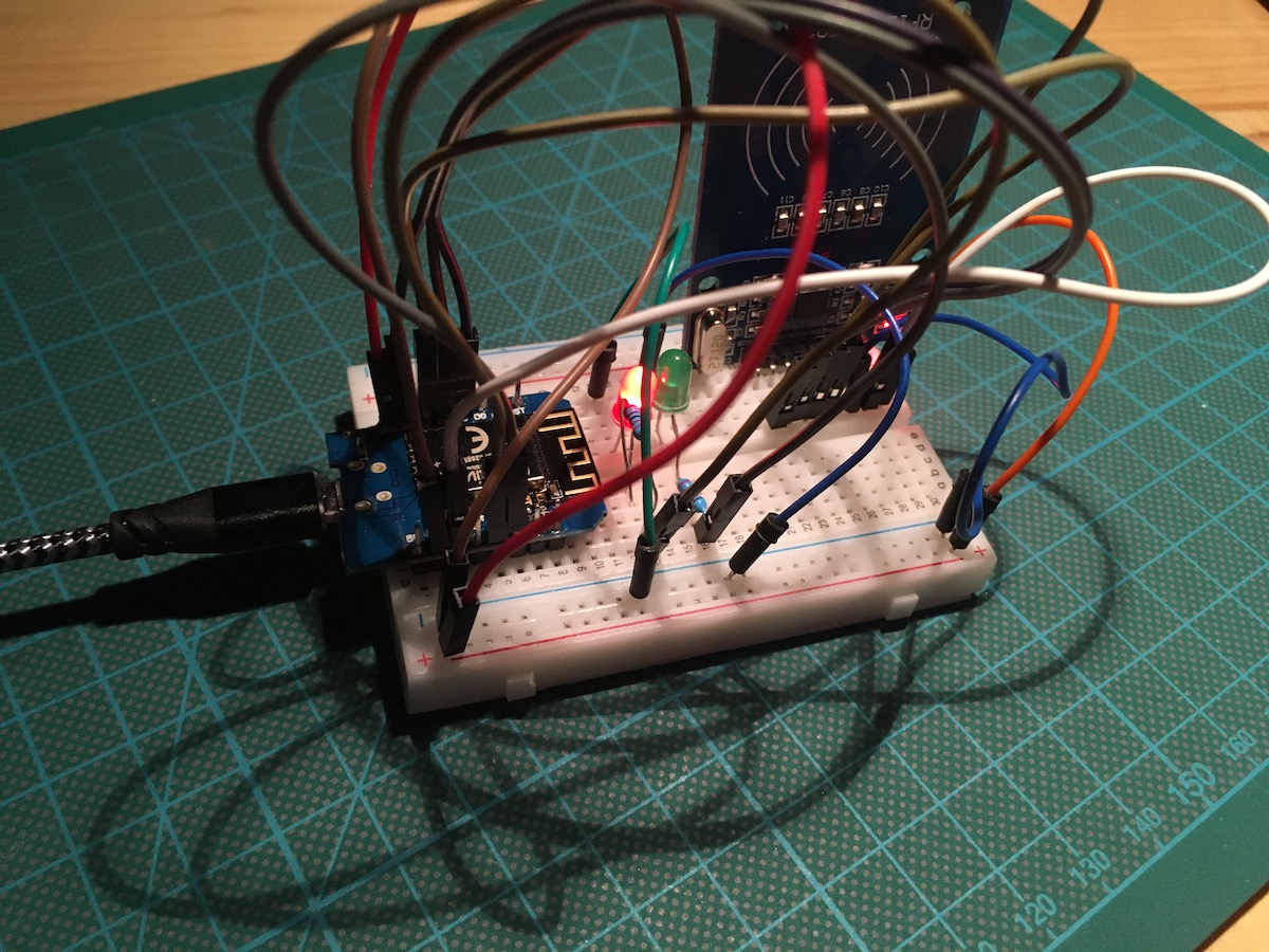 Also, I connected a green LED to D1 and a red led to d2 - they should provide an additional visual clue about reading and identifying an RFID card.