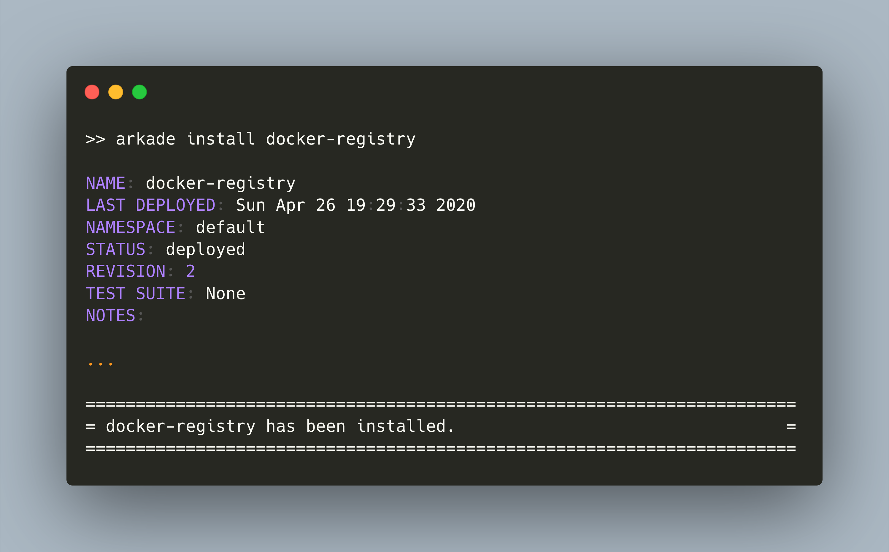>> arkade install docker-registry-ingress --email $DOCKER_EMAIL --domain $DOCKER_REGISTRY
