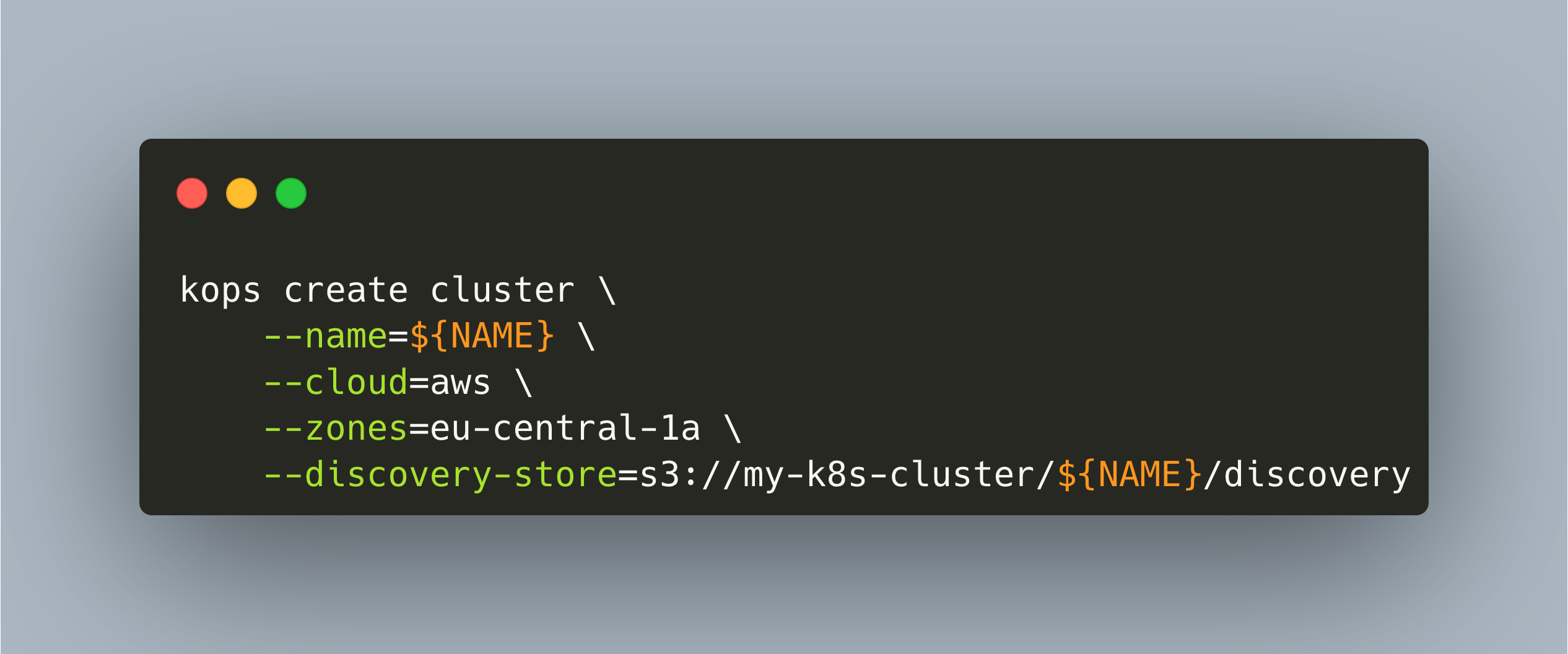 --discovery-store=s3://my-k8s-cluster/${NAME}/discovery