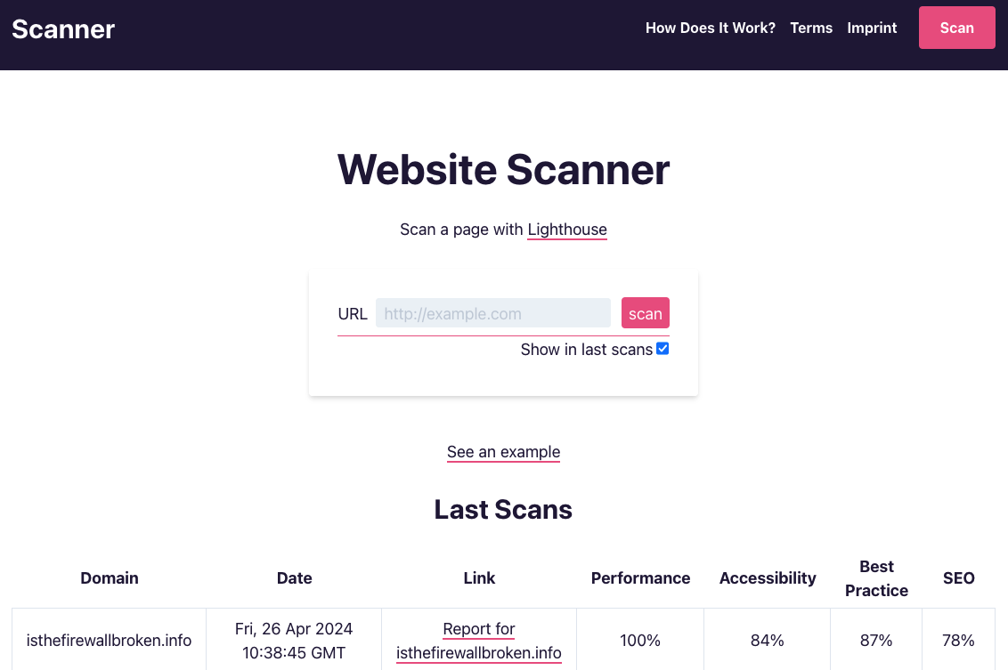 Almost 4 years ago, on 2020-05-21, I introduced my custom Lighthouse service, a website scanner that checks SEO score, performance metrics and best practice implementations.