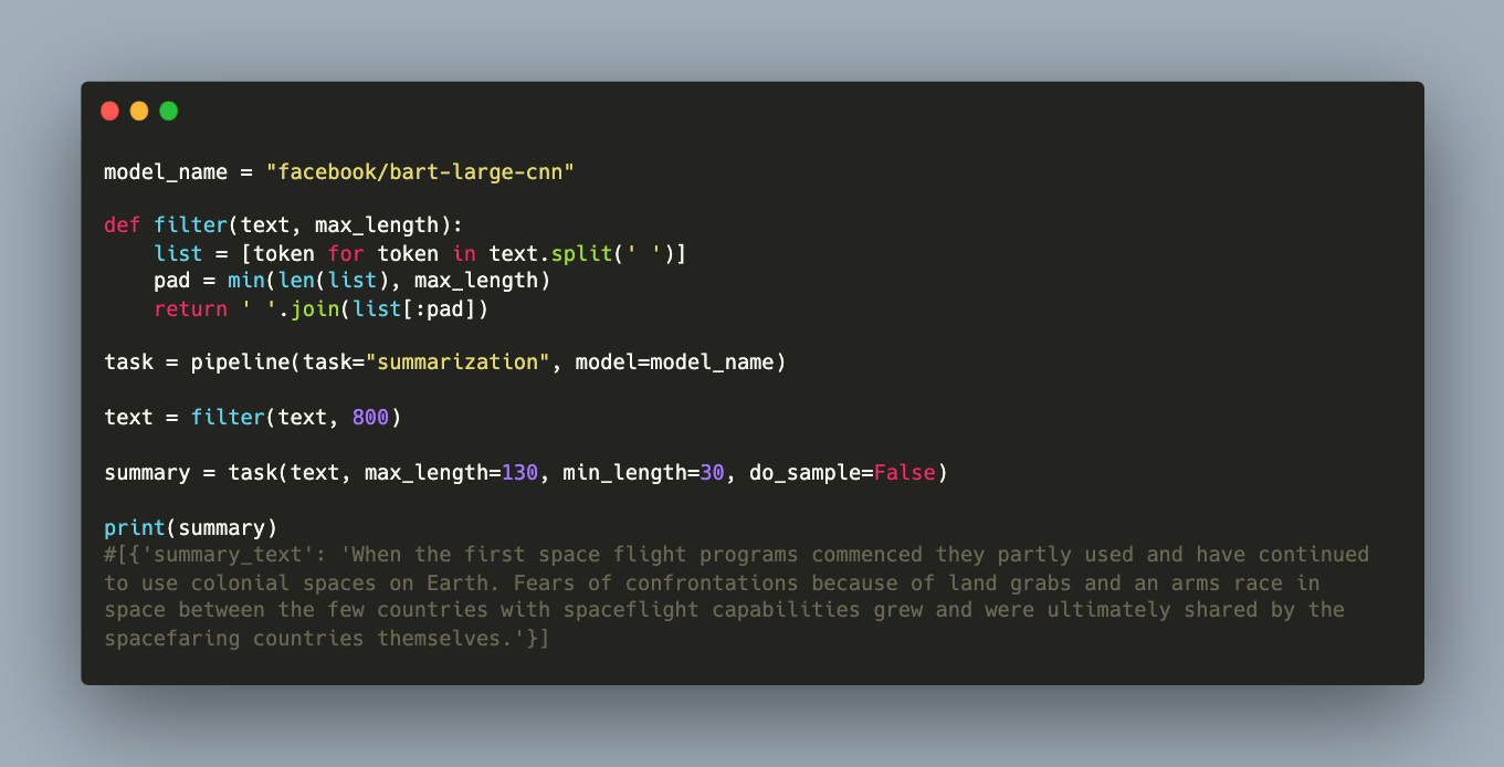 | Summarization | Provide an excerpt or generated summary of a text | `summarization` |