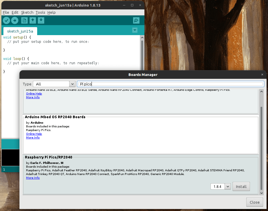There are two options to get this working. First, if you are coming from the Arduino world, you can add the Rasperry Pico as a board to your Arduino IDE. Add the Pico Arduino repository to your board manager according to the installation manual. Then, select the appropriate board and you are ready to program.
