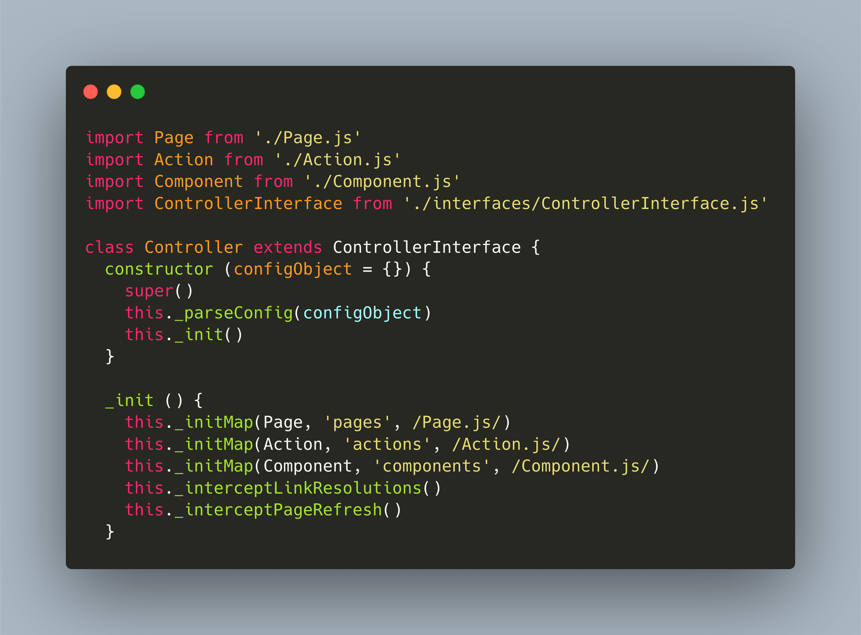 My custom JavaScript framework is a generic approach to structure client-side applications that need to provide complex UI interactions. This article covered the framework's heart: The controller. I explained the main motivation of the controller - a central, self-initializing JavaScript module. It loads all pages and actions of the app, then serves the Index page. From there on, it handles routing and exposes actions that are triggered by pages. The next article details the self-initialization feature.