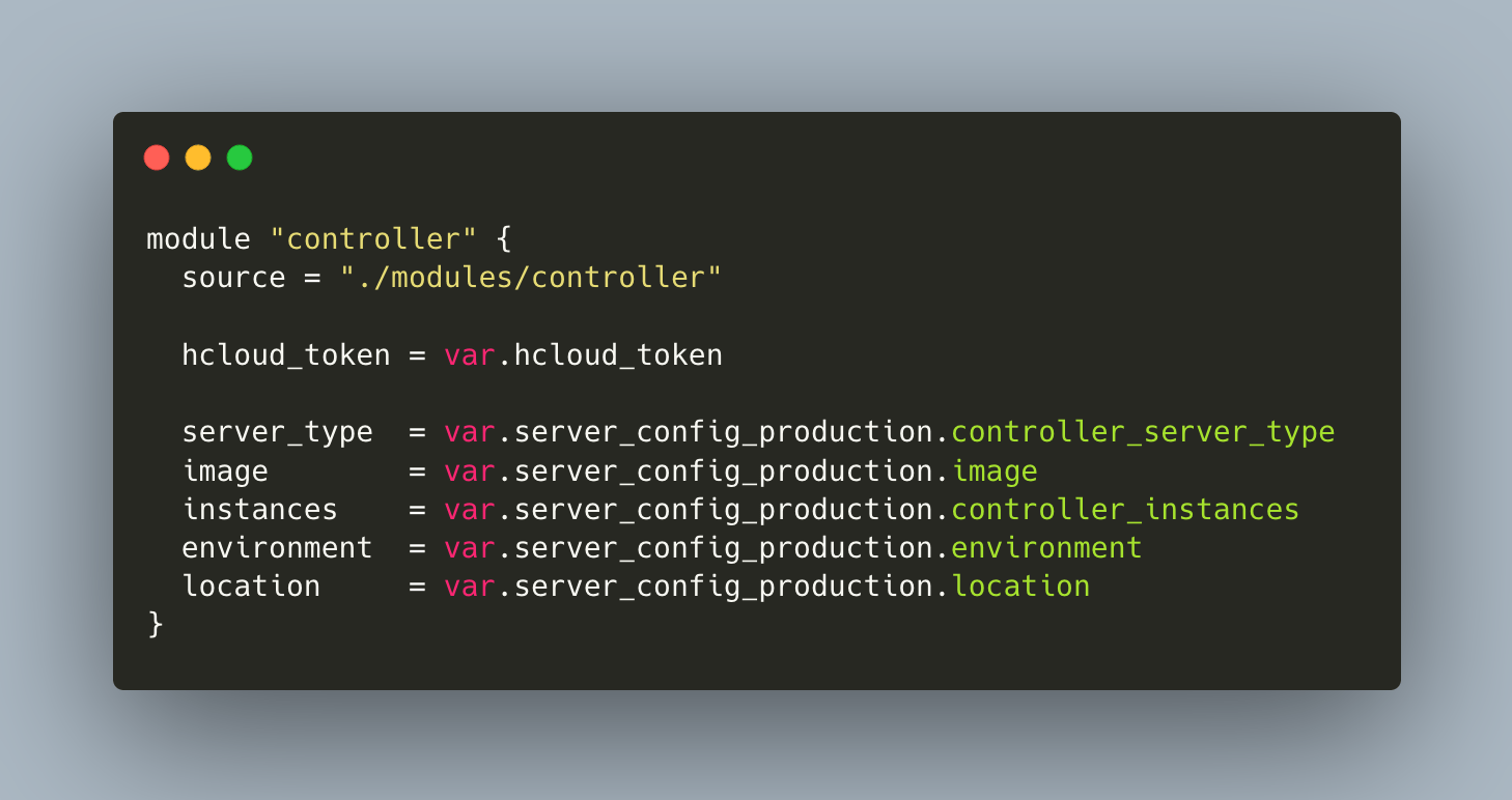 As before, to better understand modules, let’s use them in the very same example project. We will create two separate modules for the controller and the worker, and define them in such a way that all required variables are to passed from he root modules