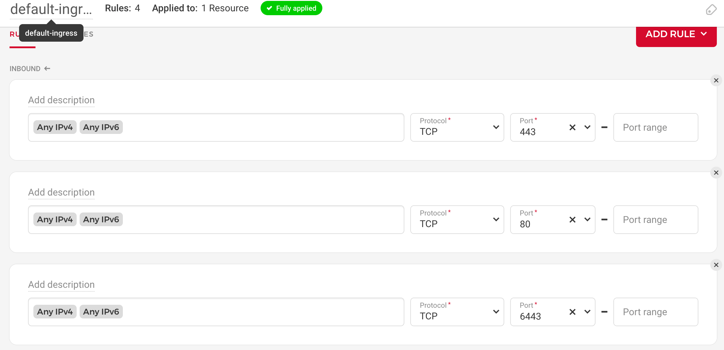 To make the server access more secure, lets create firewall rules that only allow Ingress traffic on ports 22, 80, 443, and 6443.
