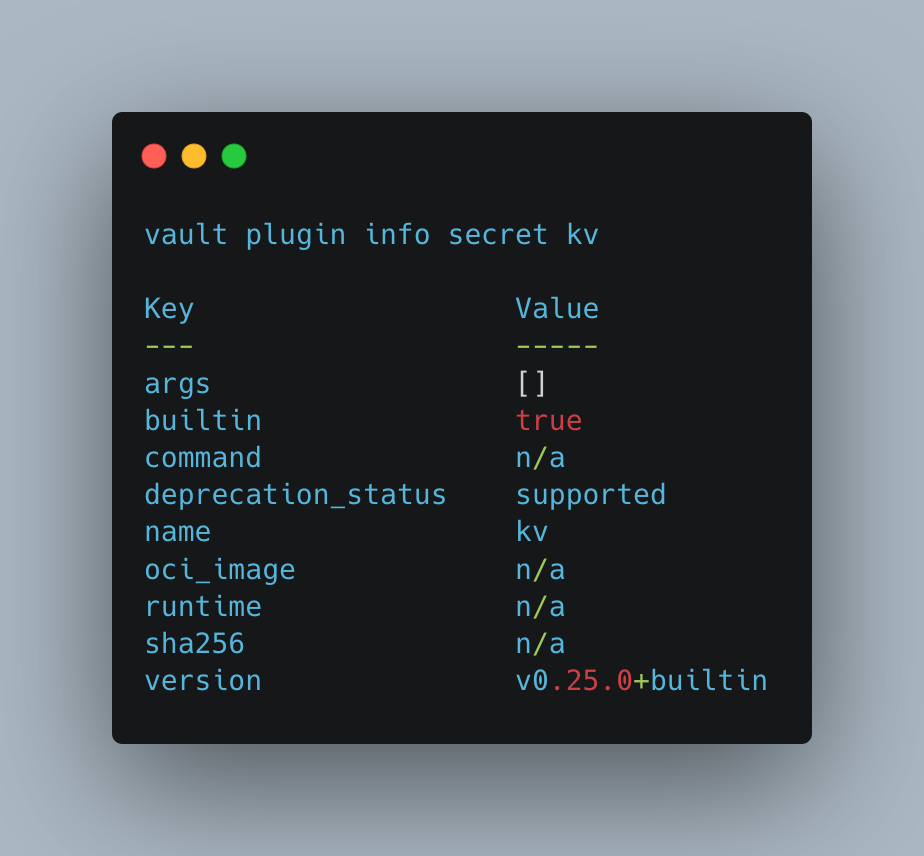 > vault plugin info secret kv
